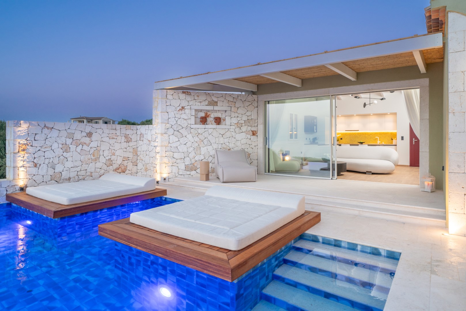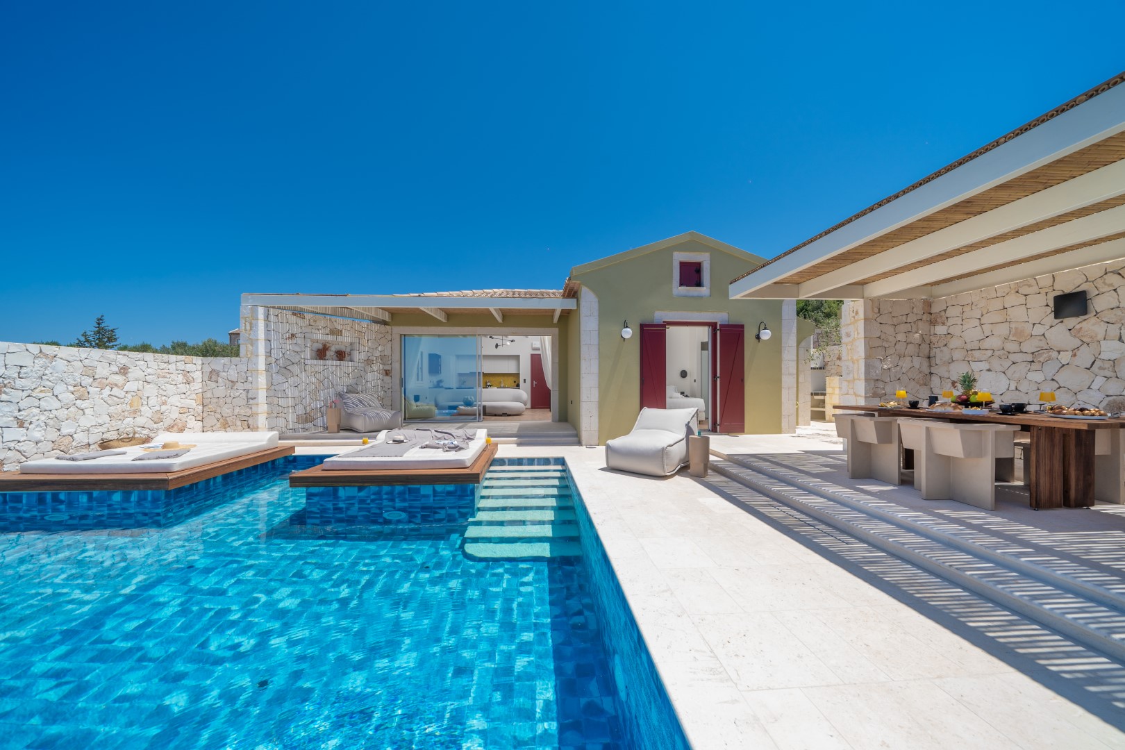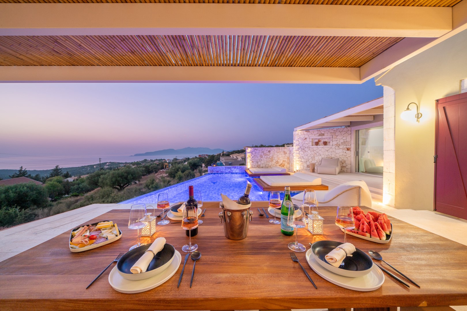OUTDOORS: Gorgeous terrace with dining area, loungers and umbrellas, infinite swimming pool with jacuzzi, open poolside shower, BBQ.