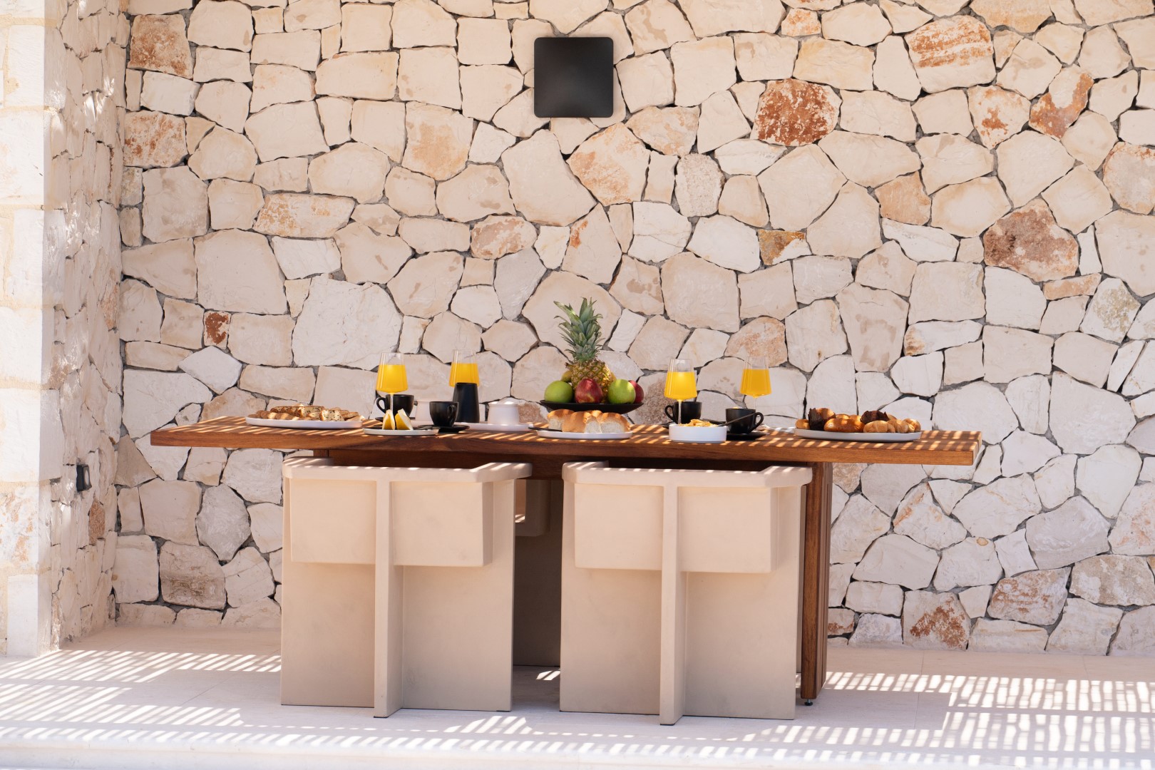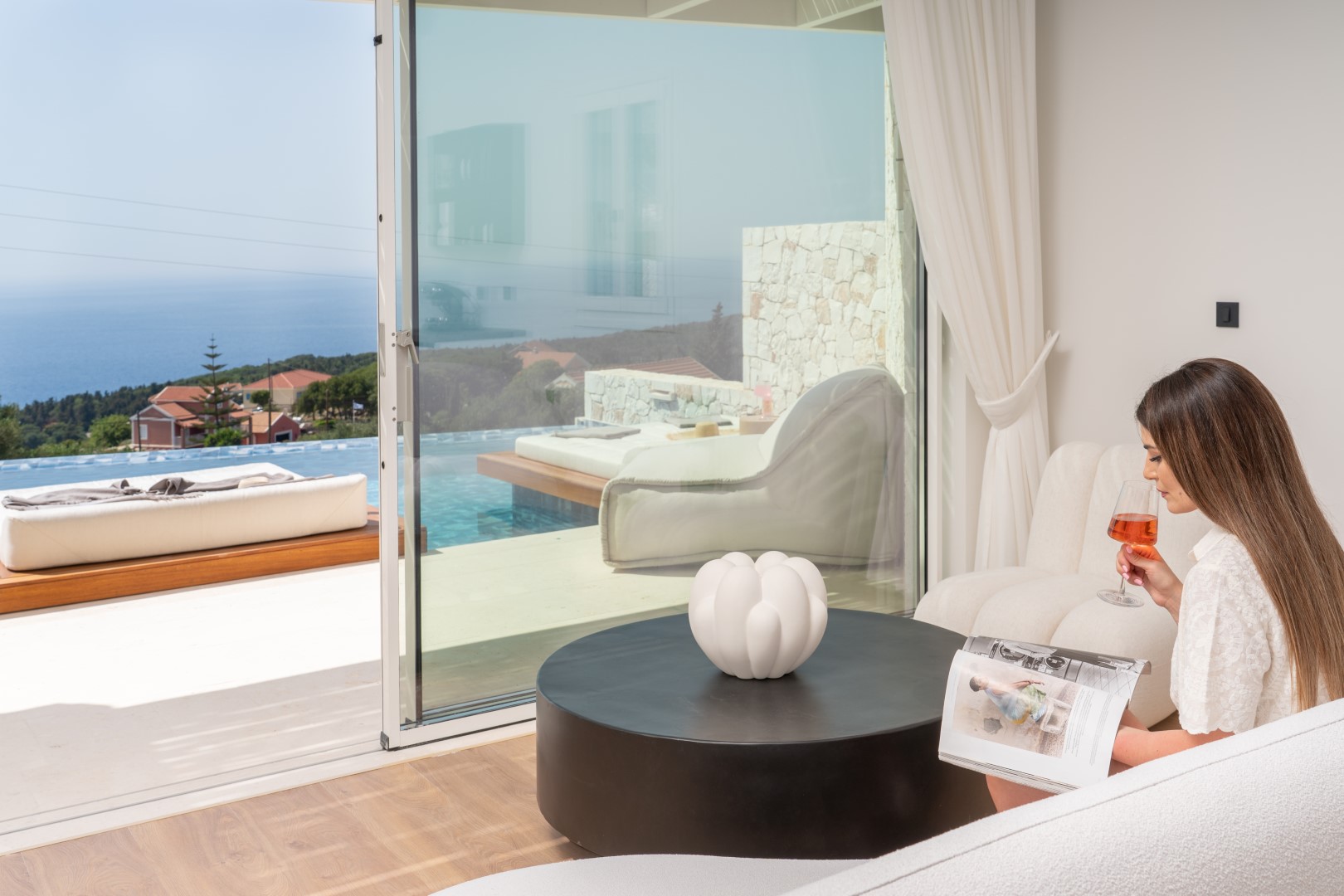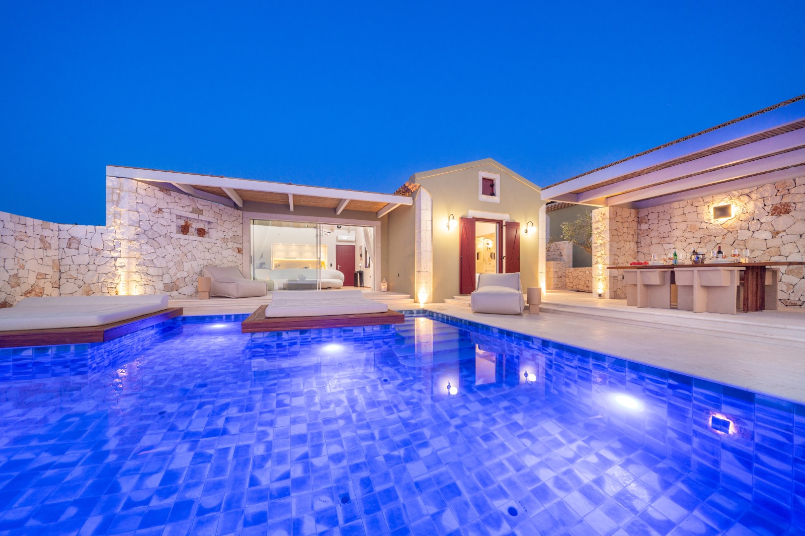 OUTDOORS: Gorgeous terrace with dining area, loungers and umbrellas, infinite swimming pool with jacuzzi, open poolside shower, BBQ.