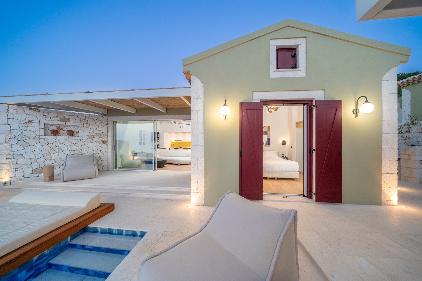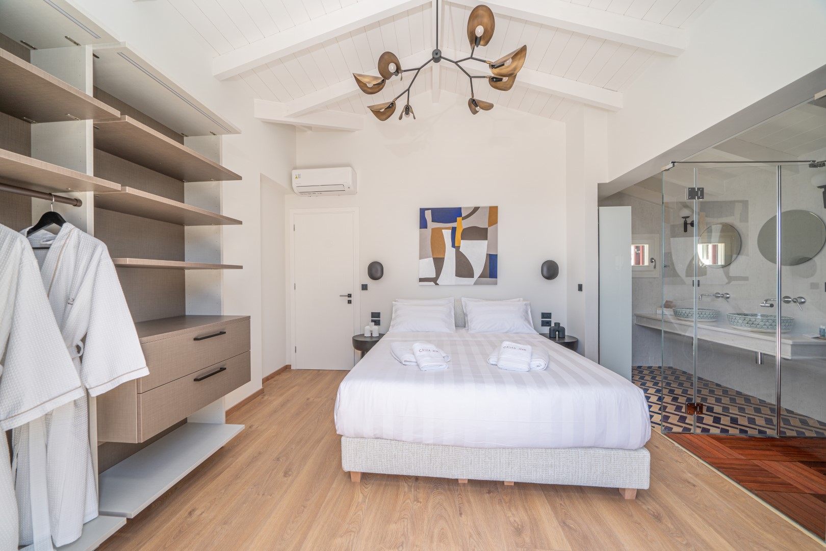 MASTER BEDROOM (ground floor): double bed (175x200), ensuite bathroom with shower, socket near the bed/ USB, access to the pool veranta with magnificent sea view.