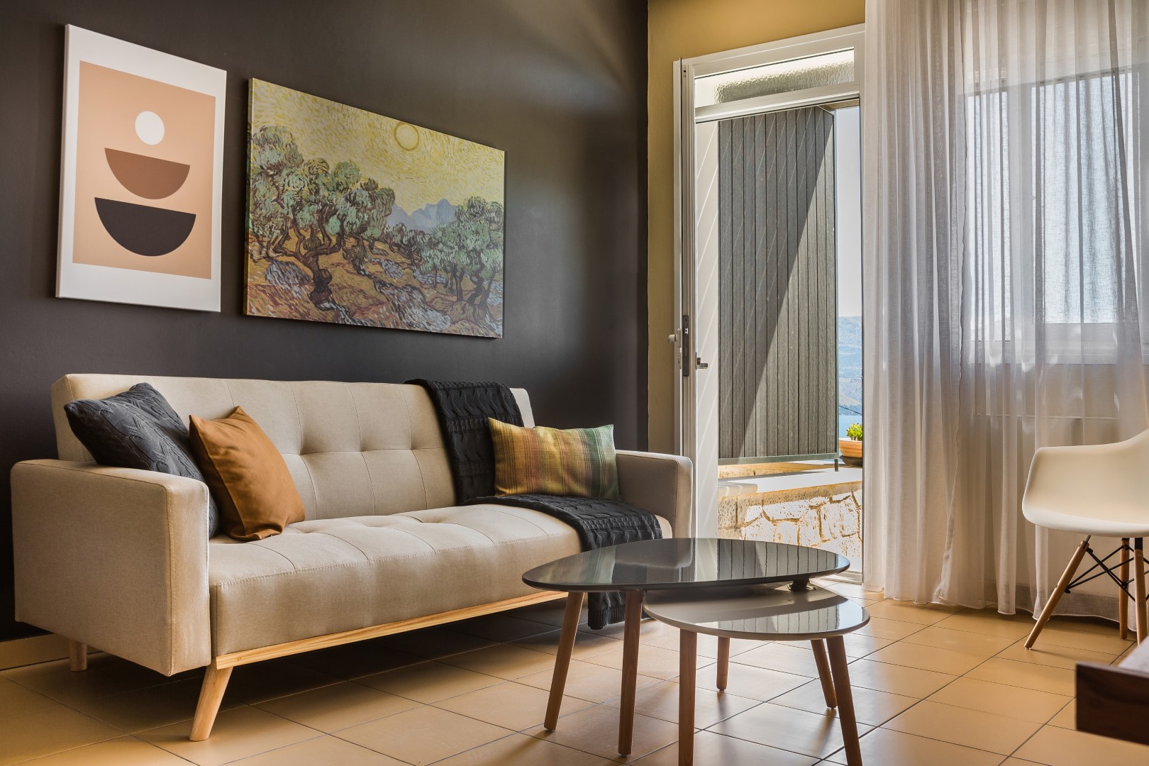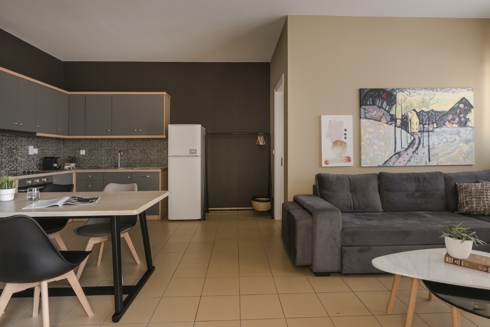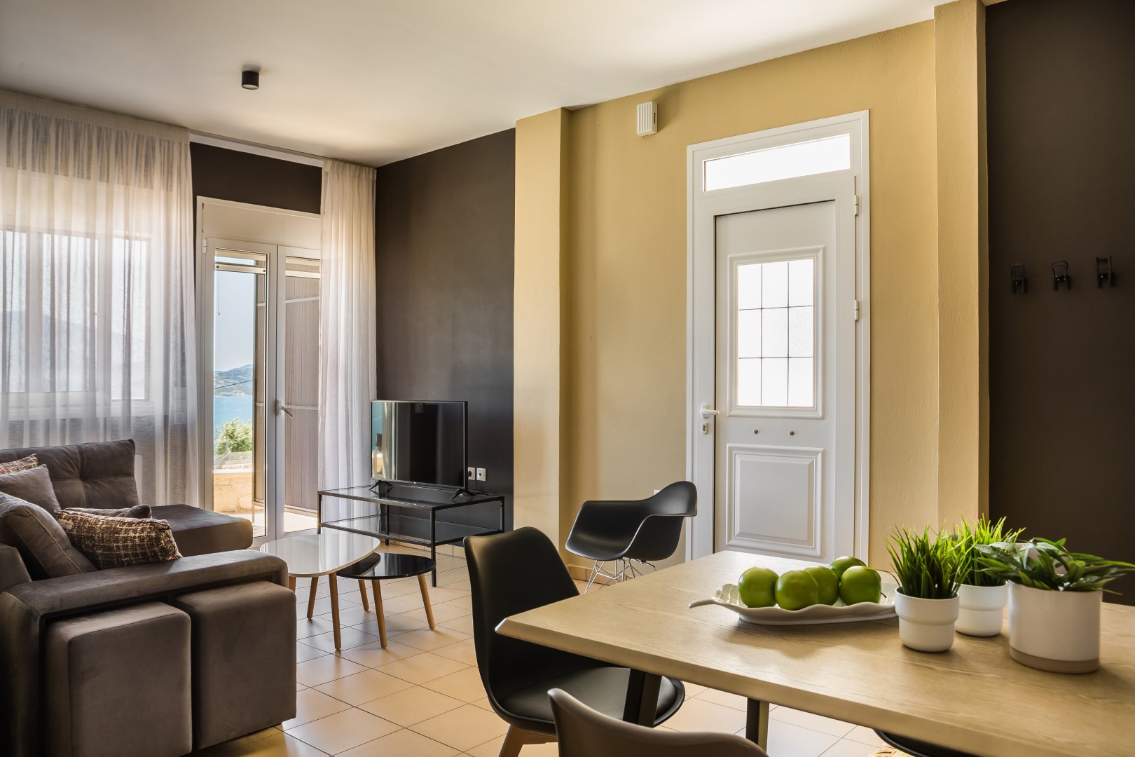 LIVING/ DINING AREA: Comfortable living room, dining table, flat screen TV.