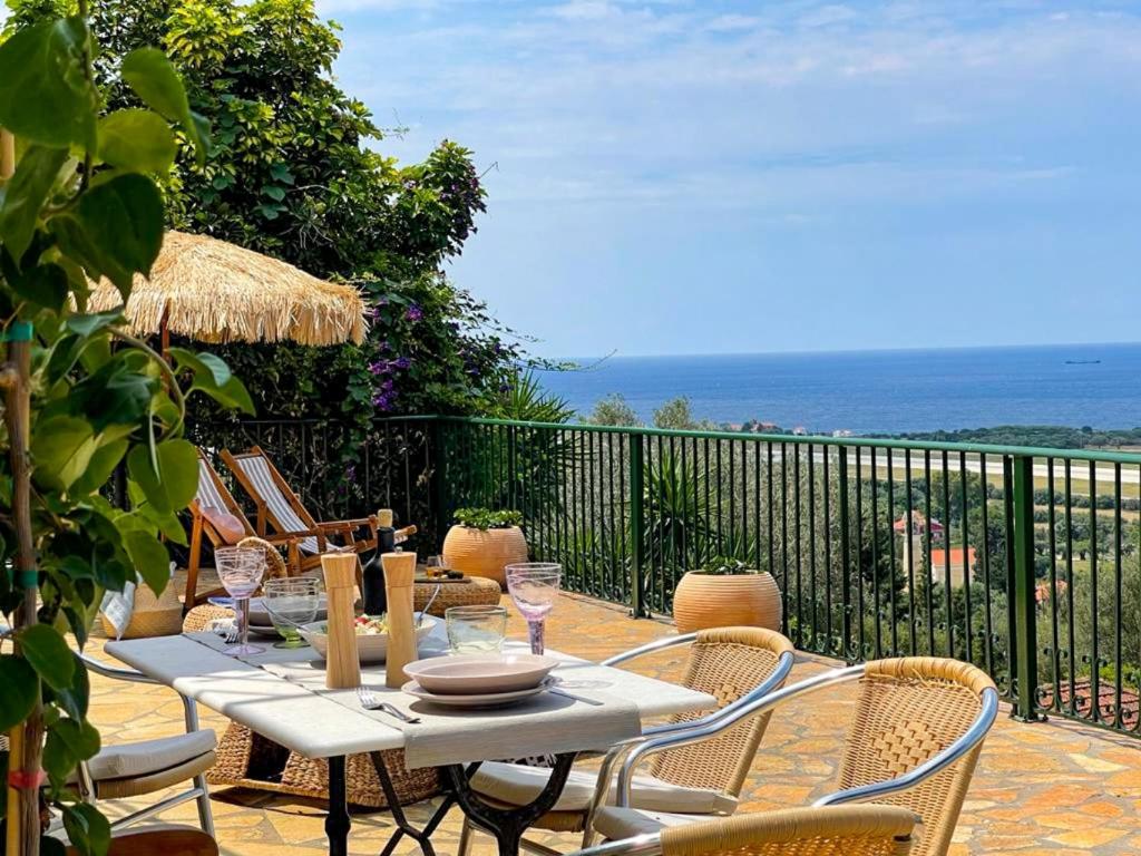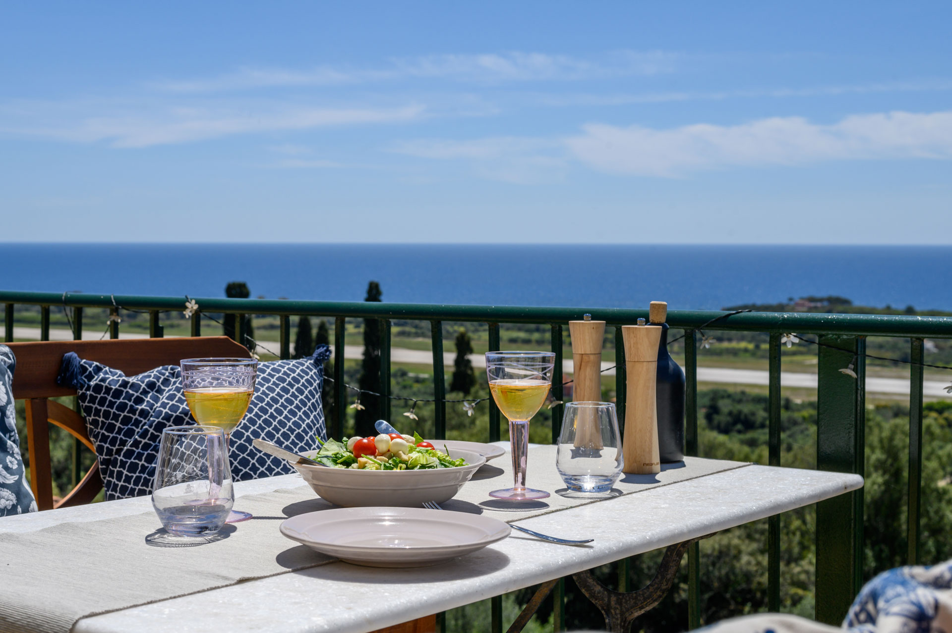 OUTDOORS: Gorgeous terrace with dining area, loungers and umbrellas, well cared garden.